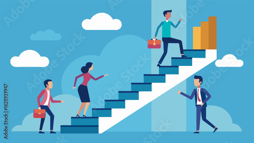 A companywide stair climbing challenge encouraging employees to take the stairs instead of the elevator.. Vector illustration