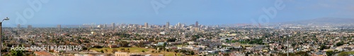 A compete panoramic view of Long Beach from the top of Signal Hill Park.