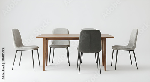 A complete dining table set with chair appears elegant against a white background, ideal for interior and furniture themes.