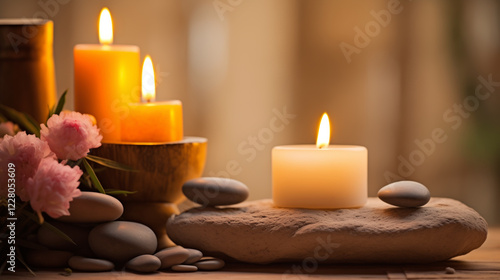 A composition of candles and stones creates the perfect atmosphere for meditation and relaxation