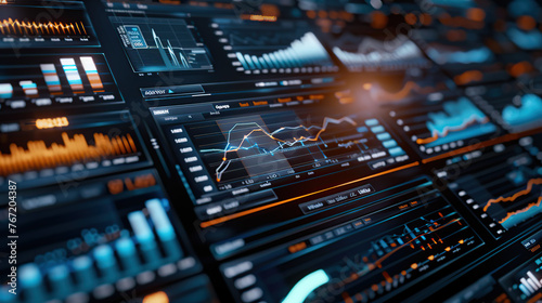 a comprehensive visual representation of business audit and financial management, showcasing dynamic graphs and charts