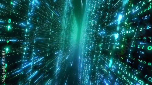 A computer generated image of a green, multi-colored, multi-dimensional space with a lot of numbers