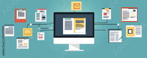 A computer monitor with a lot of emails and other documents on it. The idea of the image is that of a busy work day with a lot of tasks to complete