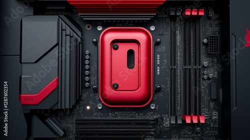 A computer motherboard with a state-of-the-art AI processor. AI generative.