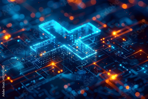 A computer screen with a blue cross on it. The cross is surrounded by a lot of glowing lights