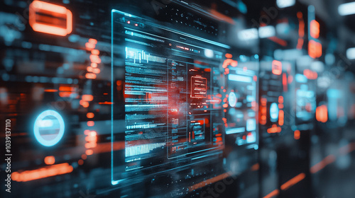 A computer screen with a lot of red and blue lights
