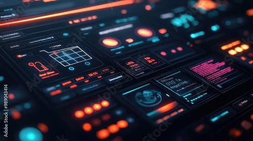 A computer screen with many different colored icons and buttons