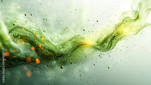 A conceptual abstract image featuring bright green sparks and glowing embers scattered across a white background, with random orange sparks adding contrast. Generative AI