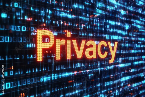 A conceptual digital image where the word "Privacy" is placed over a dynamic, randomized set of numbers and letters, symbolizing secure online spaces.