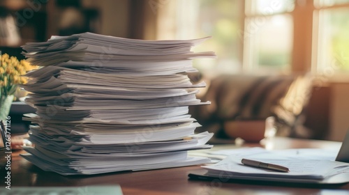 A conceptual image of rising home repair bills stacked on a table, representing the growing cost of home maintenance