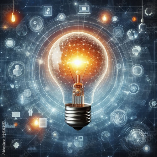 A conceptual image showcasing a light bulb as a metaphor for an innovative breakthrough and smart idea, symbolizing genius marketing strategy planning and creative thinking in business.
