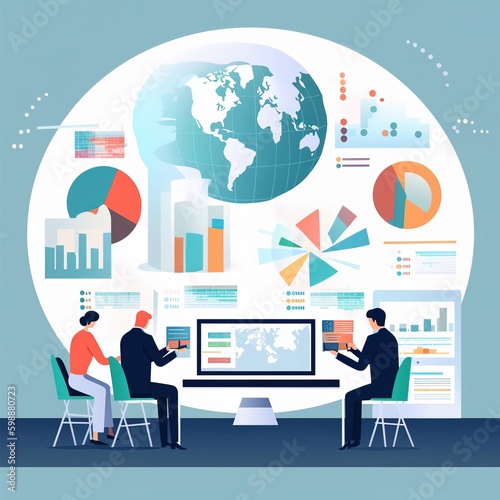 A conference of business consultants discusses marketing growth research and corporate strategy planning. Financial planning based on investment data analysis. generative AI