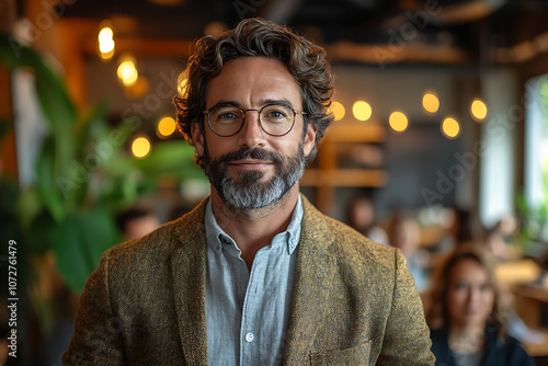 A confident businessperson giving a presentation in a modern office, surrounded by a focused team, symbolizing motivation and drive for success in business and career.
