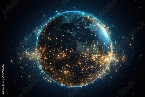 A constellation of digital stars forming the shape of a globe, portraying the global reach and impact of the internet. Concept of digital globalization. Generative Ai.