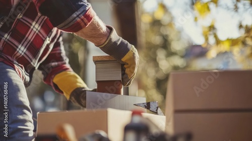 A construction worker installing a chimney. Featuring precision and craftsmanship