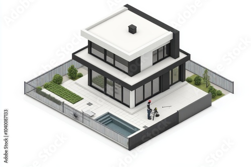 A construction worker installing a durable metal fence to protect a homeowner's property.