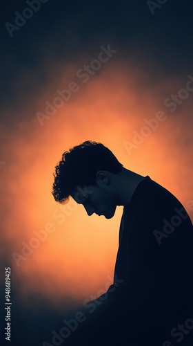 A contemplative silhouette of a man against a warm, glowing background, evoking emotions of introspection and solitude.