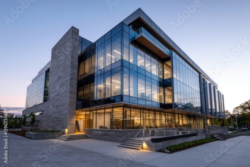 A contemporary structure featuring a glass facade, showcasing an abstract and futuristic design.