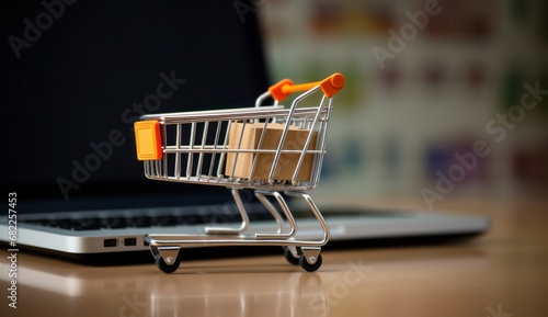 A Convenient Combination: Shopping Cart and Laptop Unite for Ultimate Efficiency