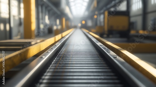 A conveyor belt transporting raw materials through a factory, conveyor belt production, factory efficiency.