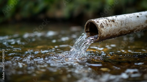A corroded pipe releasing contaminated water into a polluted environment symbolizing industrial waste pollution environmental degradation and the urgent need for sustainable waste management solutions