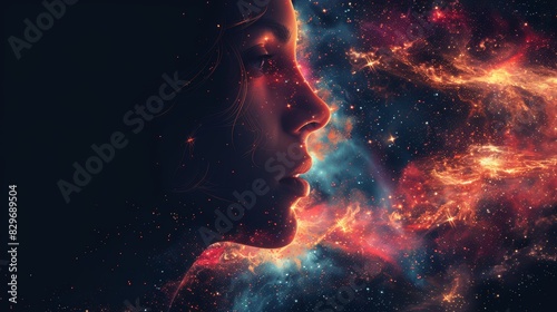 A cosmic display of a vibrant nebula with star clusters and space dust in a deep space simulation