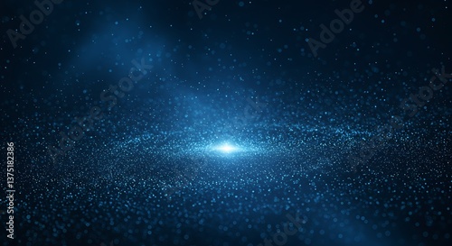 A cosmic ocean of shimmering blue dust particles, a celestial spectacle with a bright core, creating a mesmerizing deep space scene.