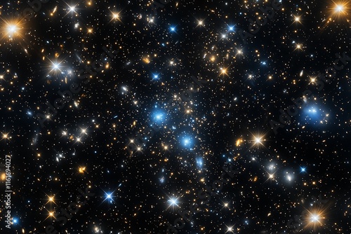 A cosmic void with endless energy streams and distant star clusters in motion.