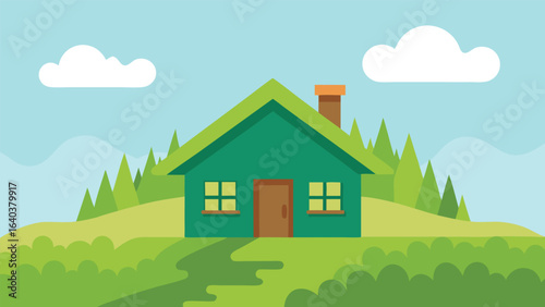A countryside house surrounded by trees under a cloudy sky, showcasing a serene rural landscape.
