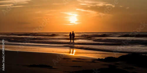 a couple having a good time on the sunset beach, generative ai