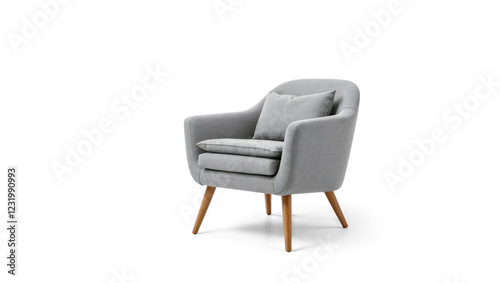 A cozy gray armchair with soft upholstery, ideal for living rooms, offices, or interior design themes isolated on white background. Generative AI