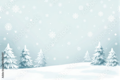 A cozy snow-themed Christmas pattern showcasing intricate snowflakes, soft winter tones, and snowy trees for a warm, festive design..