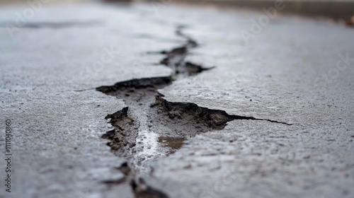 A Crack in the Asphalt Pavement with a Puddle of Water