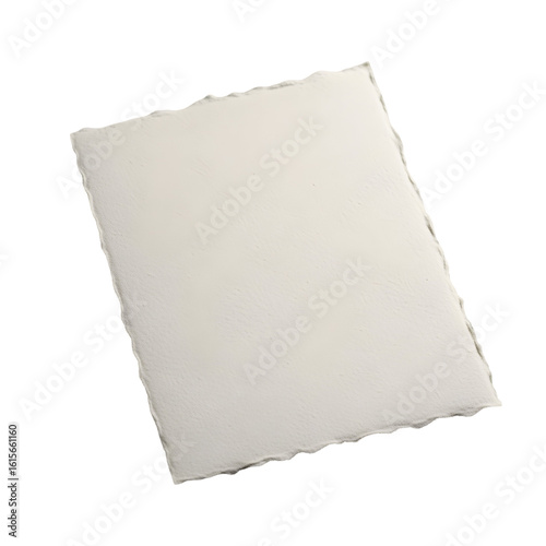 A cream colored textured sheet of paper with torn edges is isolated on white or transparent background