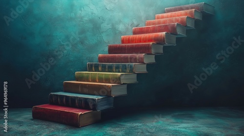 A creative depiction of colorful books arranged as a staircase, symbolizing knowledge and the journey of learning.