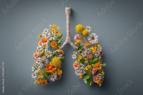 A creative depiction of lungs made from vibrant flowers, symbolizing health and nature's beauty intertwined.
