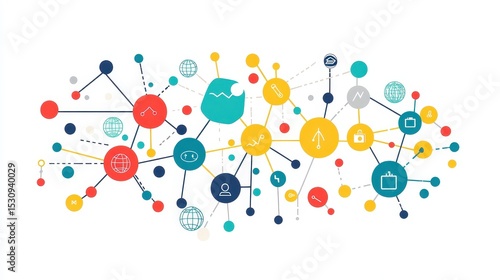 A creative mind map chart clipart, brainstorming process element, colorful connected nodes, flat design, isolated on white background.