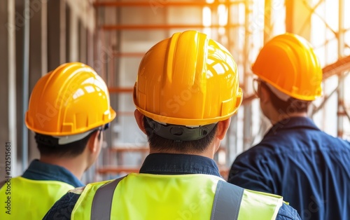 A creative team working on a digital tablet, designing a project with a colorful mood board in the background