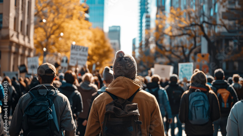 a crowd of protesters in a big city