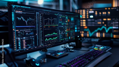 A cryptocurrency developer designing AI based automated crypto arbitrage systems for decentralized markets, futuristic trading facility with live arbitrage data, High-tech style