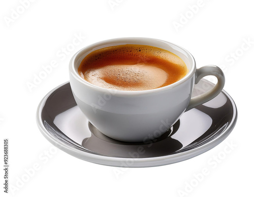 A cup of espresso coffee in a white cup with saucer cut out transparent isolated on white background PNG
