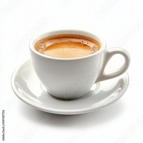A cup of freshly brewed espresso with crema on a white background. Minimalistic style, ideal for use in design, coffee advertising, café branding, and menu layout.