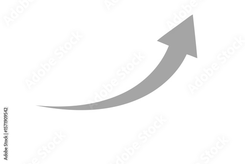 A curved gray arrow pointing upwards, isolated on white background, symbolizing growth, success, and positive direction in business