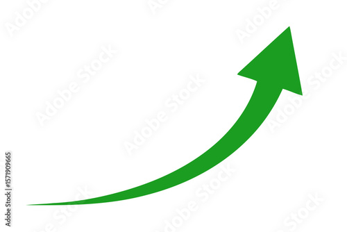 A curved green arrow pointing upwards, isolated on white background, symbolizing growth and positive direction