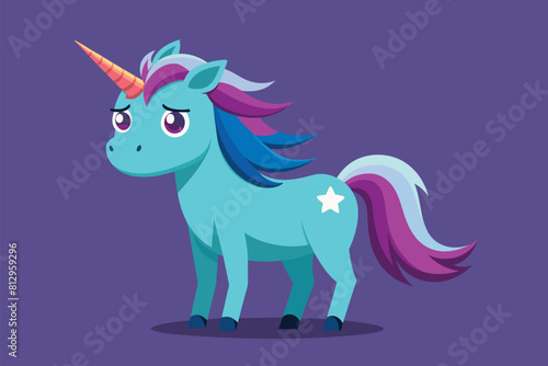 A customizable semi-flat illustration of a sad unicorn with a star on its head, Sad unicorn Customizable Semi Flat Illustration