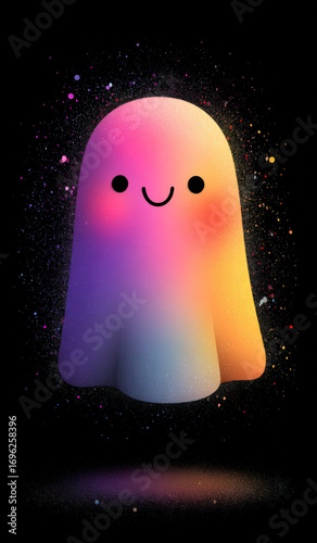 A cute ghost in rainbow colors, vector illustration for phone wallpaper