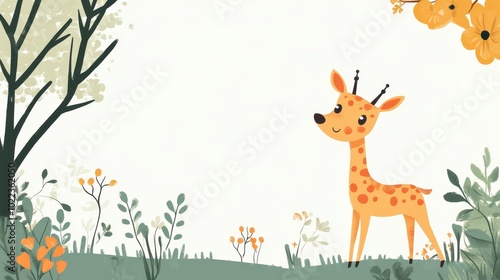 A Cute Giraffe Standing in a Field of Flowers and Trees