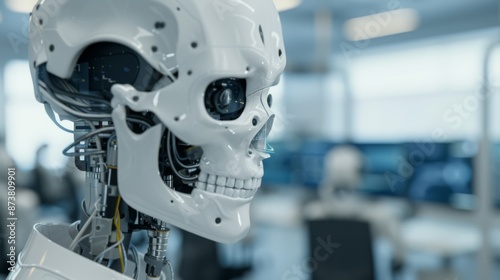 A cuttingedge tech lab where developers test the latest AIdriven robots with holographic interfaces data streams in midair and a collaborative atmosphere of innovation and creativity