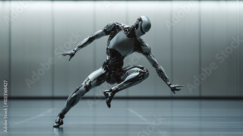 A cyborg dancer performing in a futuristic dance competition, blending technology and art