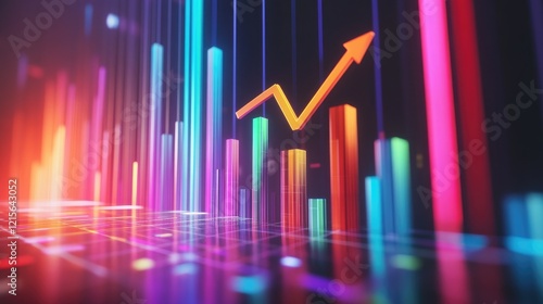 A D financial bar graph with colorful, rising bars and an arrow pointing upward, symbolizing business growth and success, set against a sleek, digital background.